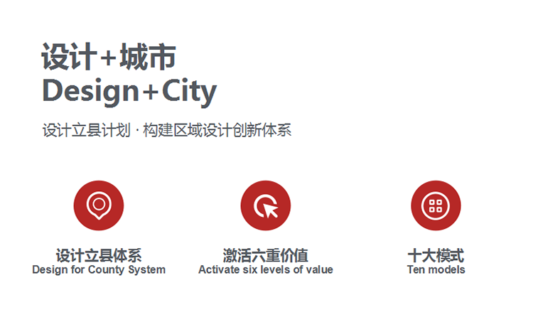 在“设计+城市”这个板块着重进行三个探讨,一个是设计立县的理论体系。实际上在做设计实践之前在设计立县的理论做了一年半时间。业界很多人说我天天谈宏大的理想但是没有案例,所以我又花了三年的时间去做了案例。今天我把它重新梳理,就设计立县的六重价值做一个简要的分享。