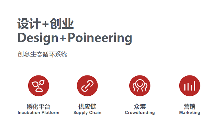创业是非常立体的,它既有孵化又有空间还有教育,同时还要有一个传播和营销的事情。所以这个孵化平台,是以设计为原点串联更多的价值。